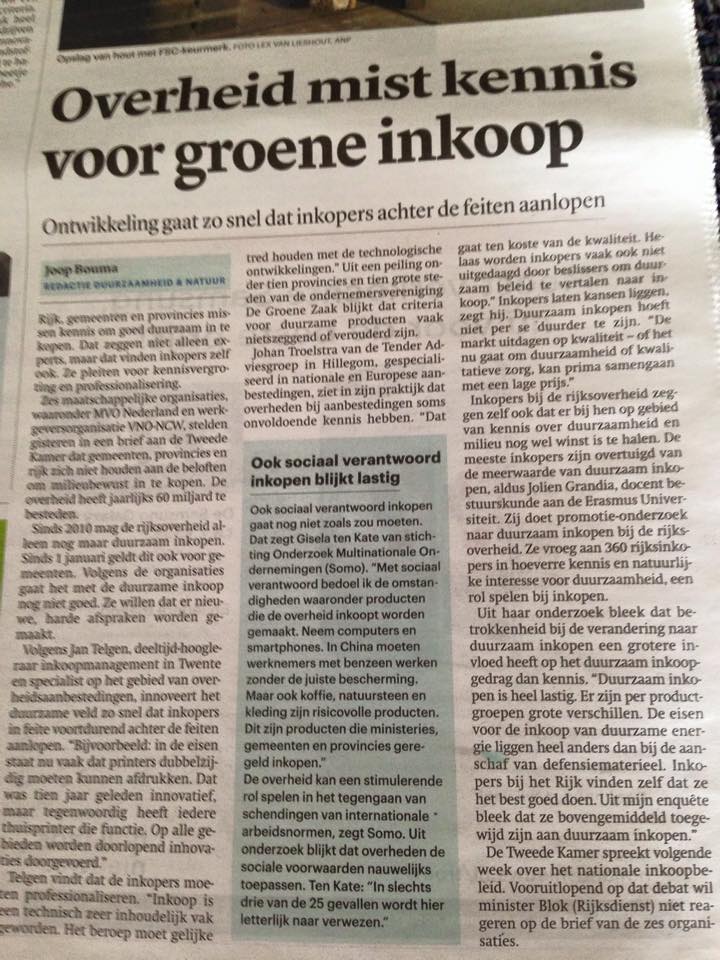 In het augustus nummer van tijdschrift TPC is een artikel van mijn hand verschenen over duurzaam inkopen bij het Rijk.